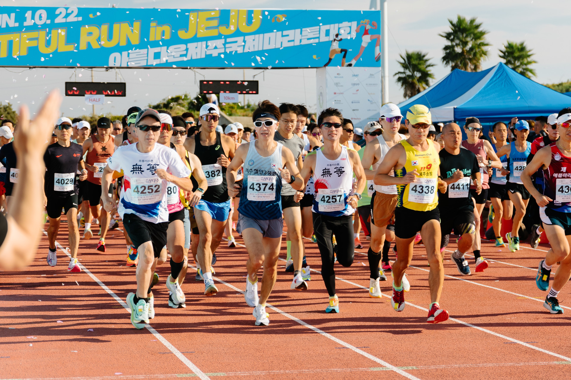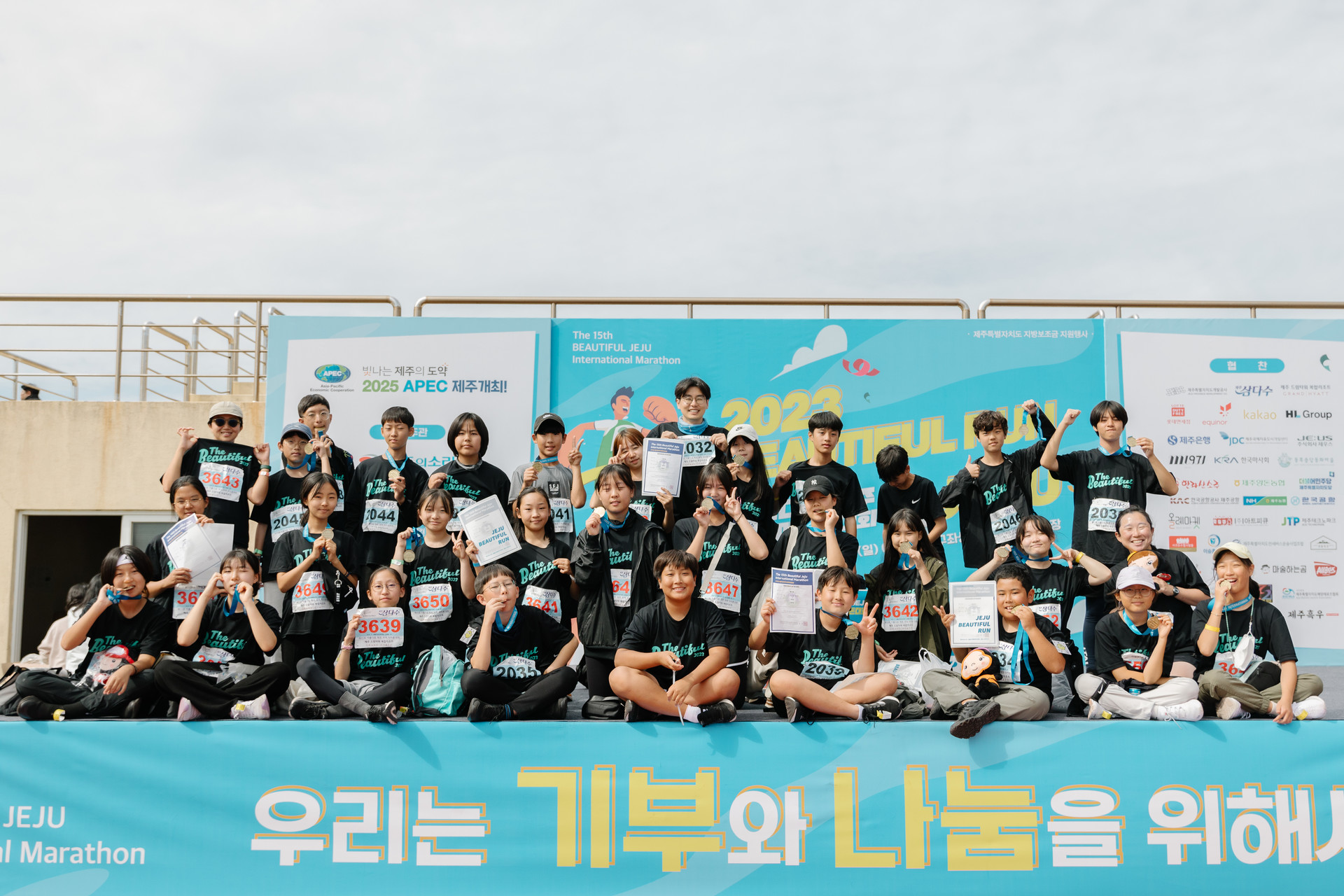 제 15회 아름다운제주국제마라톤에서 참가자에게 기능성 티셔츠를 기념품으로 제공했습니다.